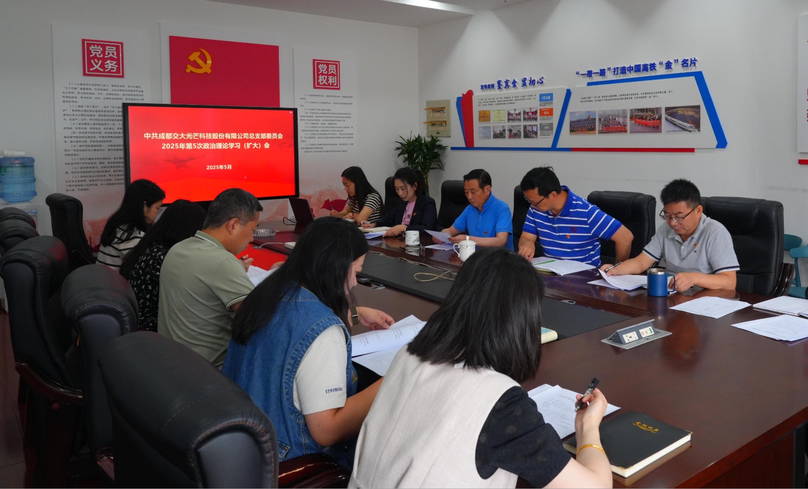 5月26日,交大光芒黨總支召開2025年第5次政治理論學習會。會議由黨總支書記、常務副總經理王濤主持,黨總支委員、經營班子成員以及各支部委員、黨群工作部、紀檢工作部負責人參加學習。