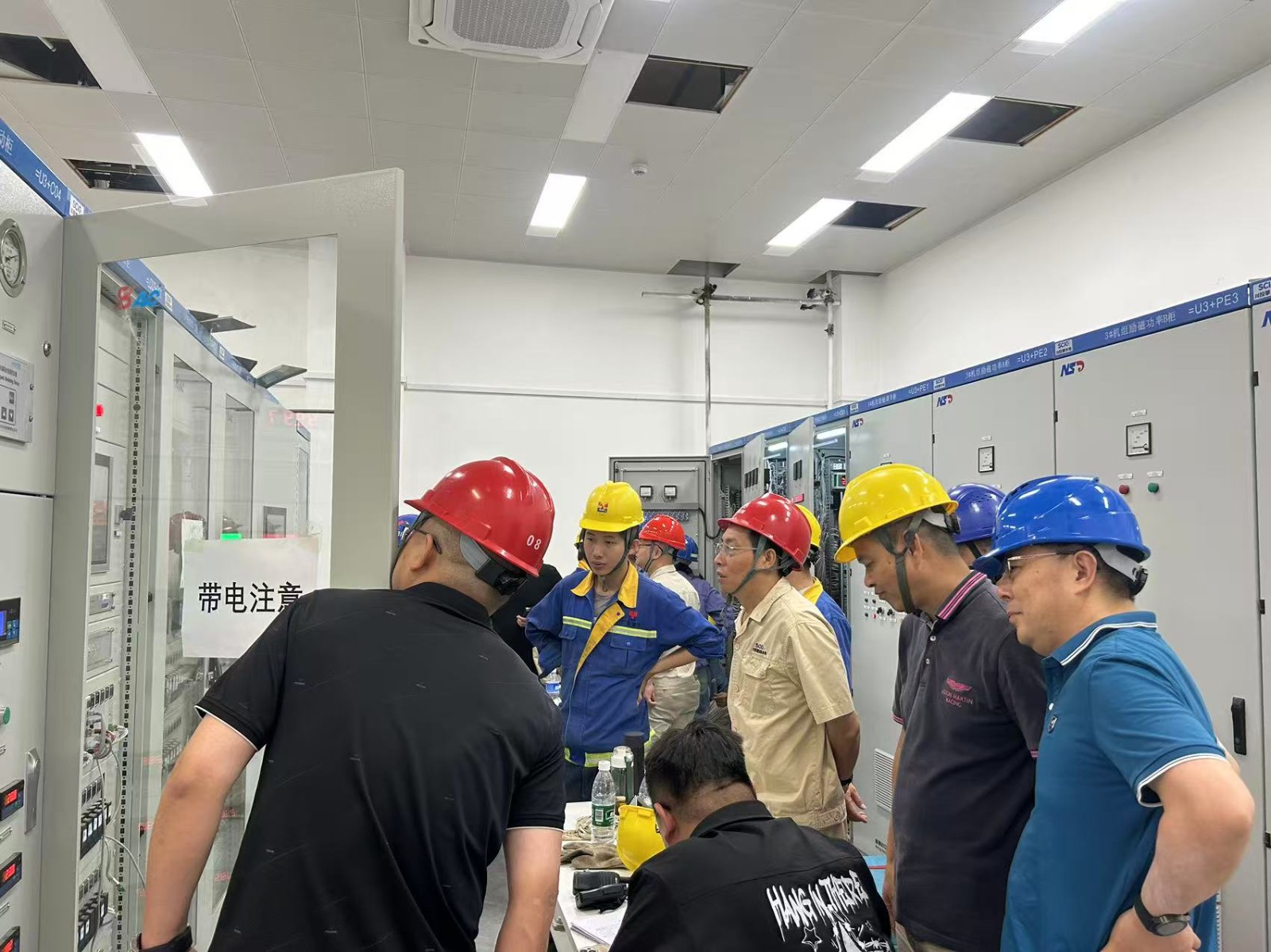 2025年攀枝花汛期比往年來的更早一些,為保障銀江水電站順利度汛和后續(xù)機(jī)組順利安裝,5月31日3號機(jī)組必須完成開機(jī)啟動,具備過流條件。為此,進(jìn)入5月以來,公司帶領(lǐng)各參建單位日夜奮戰(zhàn)在施工現(xiàn)場,實(shí)行公司領(lǐng)導(dǎo)承包劃片進(jìn)行工作督導(dǎo),施工現(xiàn)場經(jīng)常深夜還能看見公司領(lǐng)導(dǎo)現(xiàn)場忙碌的身影,經(jīng)過不懈努力先后完成了3號機(jī)組主機(jī)、輔機(jī)、調(diào)速器、機(jī)組油、氣和水系統(tǒng)、計算機(jī)監(jiān)控系統(tǒng)、勵磁系統(tǒng)、繼電保護(hù)系統(tǒng)等設(shè)備的安裝調(diào)試工作。5月30日隨著尾水事故閘門充水閥緩慢打開,3號機(jī)組流道開始充水,5月31日檢查燈炮體、管形座、流道蓋板、導(dǎo)水機(jī)構(gòu)及各排水閥等各部位正常,3號機(jī)組各系統(tǒng)單體、聯(lián)調(diào)正常,隨著指揮長徐孝剛一聲令下,3號機(jī)組手動啟動,并成功升速至100%額定轉(zhuǎn)速,機(jī)組振動、擺度、瓦溫等各項(xiàng)指標(biāo)優(yōu)良,機(jī)組運(yùn)行狀態(tài)穩(wěn)定,首次啟動成功。