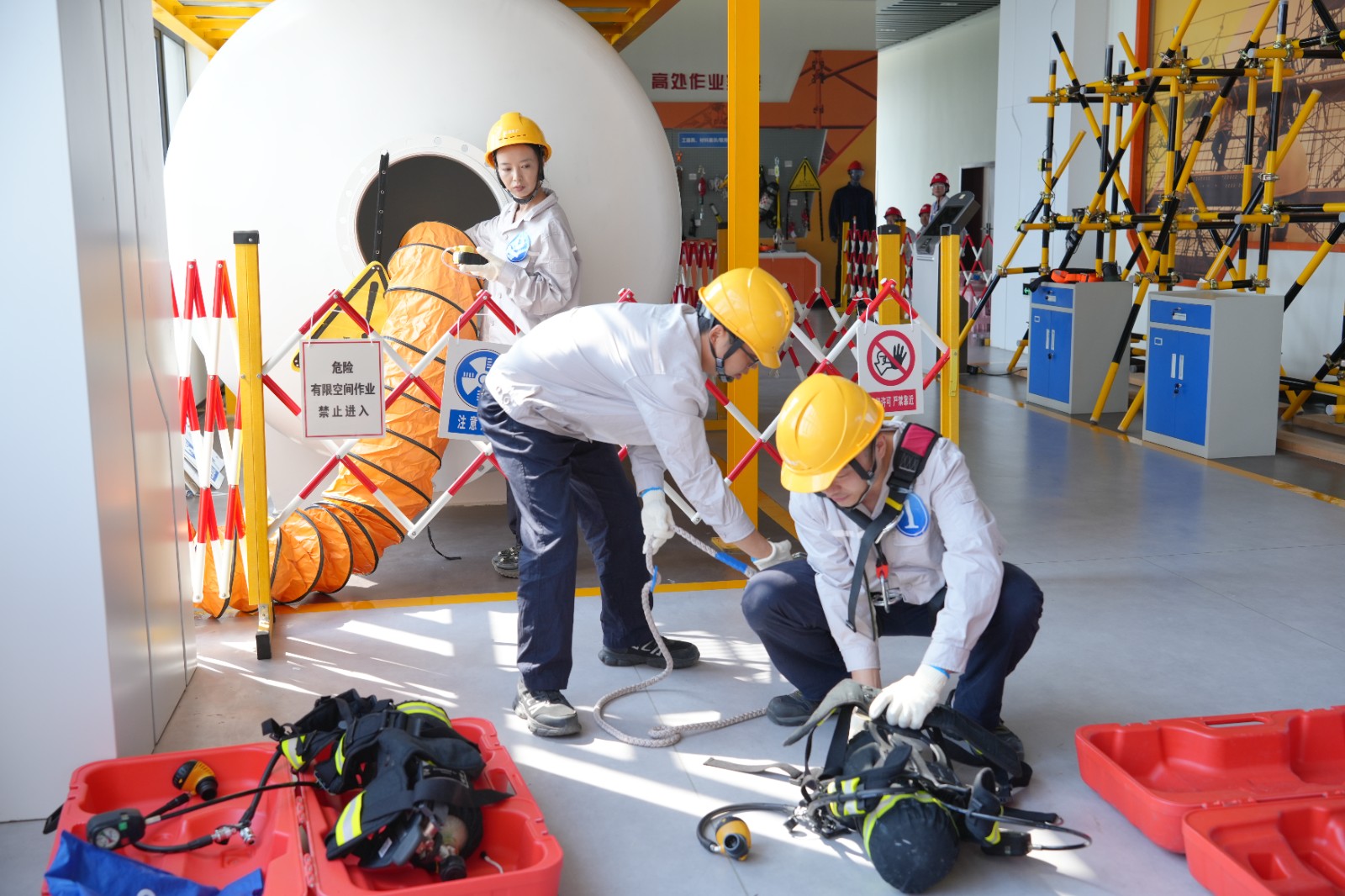 開幕式后,比賽緊扣“人人講安全、個(gè)個(gè)會應(yīng)急”,設(shè)置了“火災(zāi)逃生”和“有限空間救援”兩個(gè)極具挑戰(zhàn)性的項(xiàng)目。在火災(zāi)逃生項(xiàng)目中,模擬火災(zāi)現(xiàn)場煙霧彌漫,警報(bào)聲尖銳刺耳,參賽隊(duì)員們迅速反應(yīng),有條不紊地撤離模擬火災(zāi)現(xiàn)場。有限空間救援項(xiàng)目更是考驗(yàn)重重,隊(duì)員們熟練操作,分工明確、密切配合,充分展現(xiàn)了電力職工的專業(yè)素養(yǎng)、應(yīng)急處置能力和團(tuán)隊(duì)協(xié)作能力。