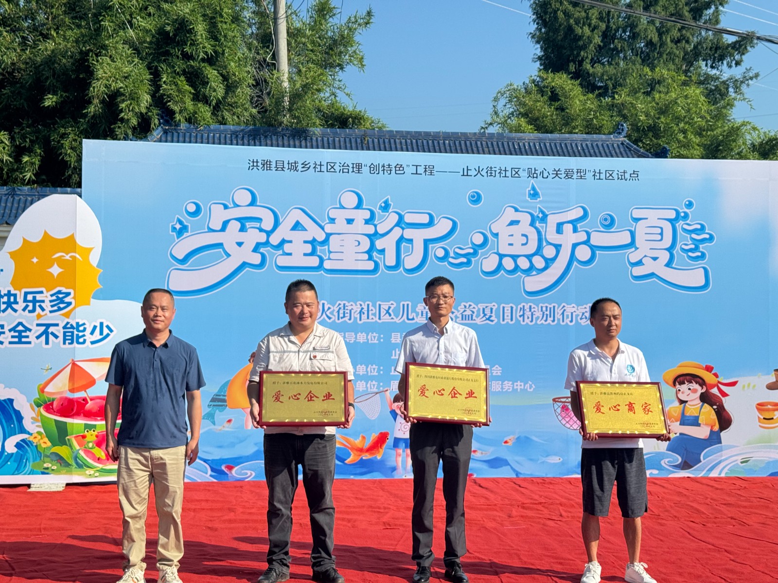 近日,止戈鎮(zhèn)止火街社區(qū)組織開展“歡樂童行?魚樂一夏” 活動?;顒又?,止戈鎮(zhèn)止火街社區(qū)為四川洪雅百花灘水力發(fā)電有限公司授予“愛心企業(yè)”榮譽稱號。