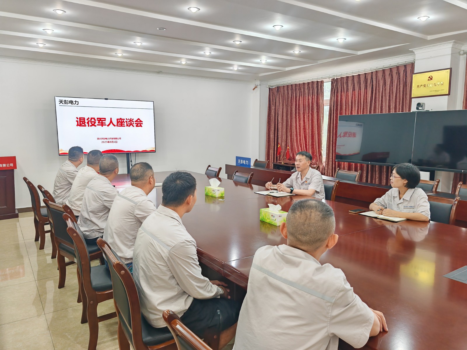 各所屬單位結(jié)合實際情況開展了“八一”建軍節(jié)走訪慰問活動。天彭電力公司、百花灘電廠召開退役軍人座談會,高奉山電廠開展“八一”建軍節(jié)主題黨日活動,槽漁灘公司組織觀看愛國主義教育電影《南京照相館》,為退役軍人送上節(jié)日祝福和慰問。所屬單位認(rèn)真學(xué)習(xí)貫徹習(xí)近平總書記對雙擁工作的重要指示精神,重點了解退役軍人當(dāng)前工作與生活面臨的困難。退役軍人職工代表結(jié)合自身經(jīng)歷,分享了在部隊期間的成長經(jīng)歷和難忘回憶,并表示永葆軍人本色,做到“退役不褪色,轉(zhuǎn)崗不轉(zhuǎn)志”,不斷提升業(yè)務(wù)能力和水平,發(fā)揮模范帶頭作用,以更高的水準(zhǔn)應(yīng)對工作中各種挑戰(zhàn)和機(jī)遇。當(dāng)前正值迎峰度夏保供電關(guān)鍵期,號召全體退役軍人職工繼續(xù)發(fā)揚(yáng)“特別能吃苦、特別能戰(zhàn)斗”的作風(fēng),在保電保供攻堅戰(zhàn)中當(dāng)先鋒、打頭陣,以實際行動踐行水電人的初心和“退役不褪色”的莊嚴(yán)承諾。