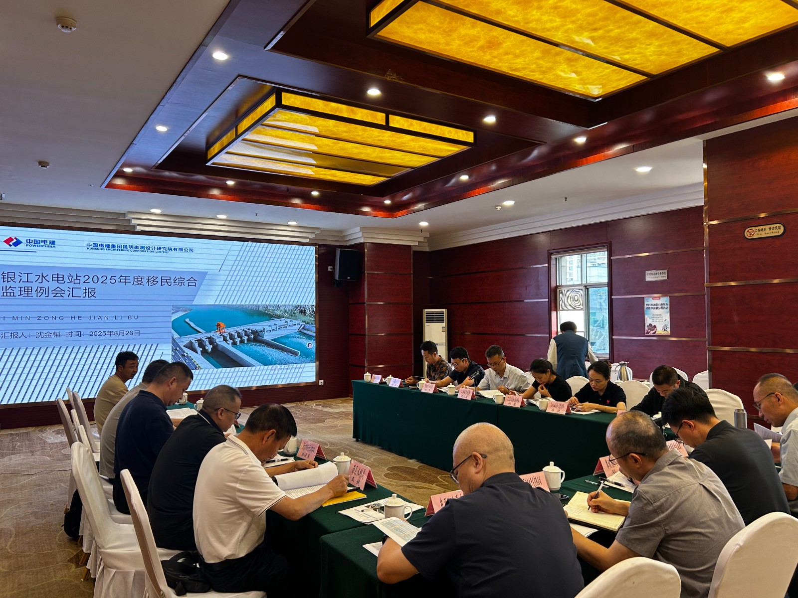 8月26日,金沙江銀江水電站召開2025年度移民監(jiān)理會(huì)議,會(huì)議由中國電建集團(tuán)昆明勘測設(shè)計(jì)研究院有限公司張禮強(qiáng)主持,攀枝花市水利局,東區(qū)人民政府及相關(guān)部門,仁和區(qū)人民政府及相關(guān)部門,西區(qū)人民政府及相關(guān)部門,川投能源攀水電公司,移民綜合設(shè)計(jì)(代),移民綜合監(jiān)理等單位共計(jì)30余人參加會(huì)議。