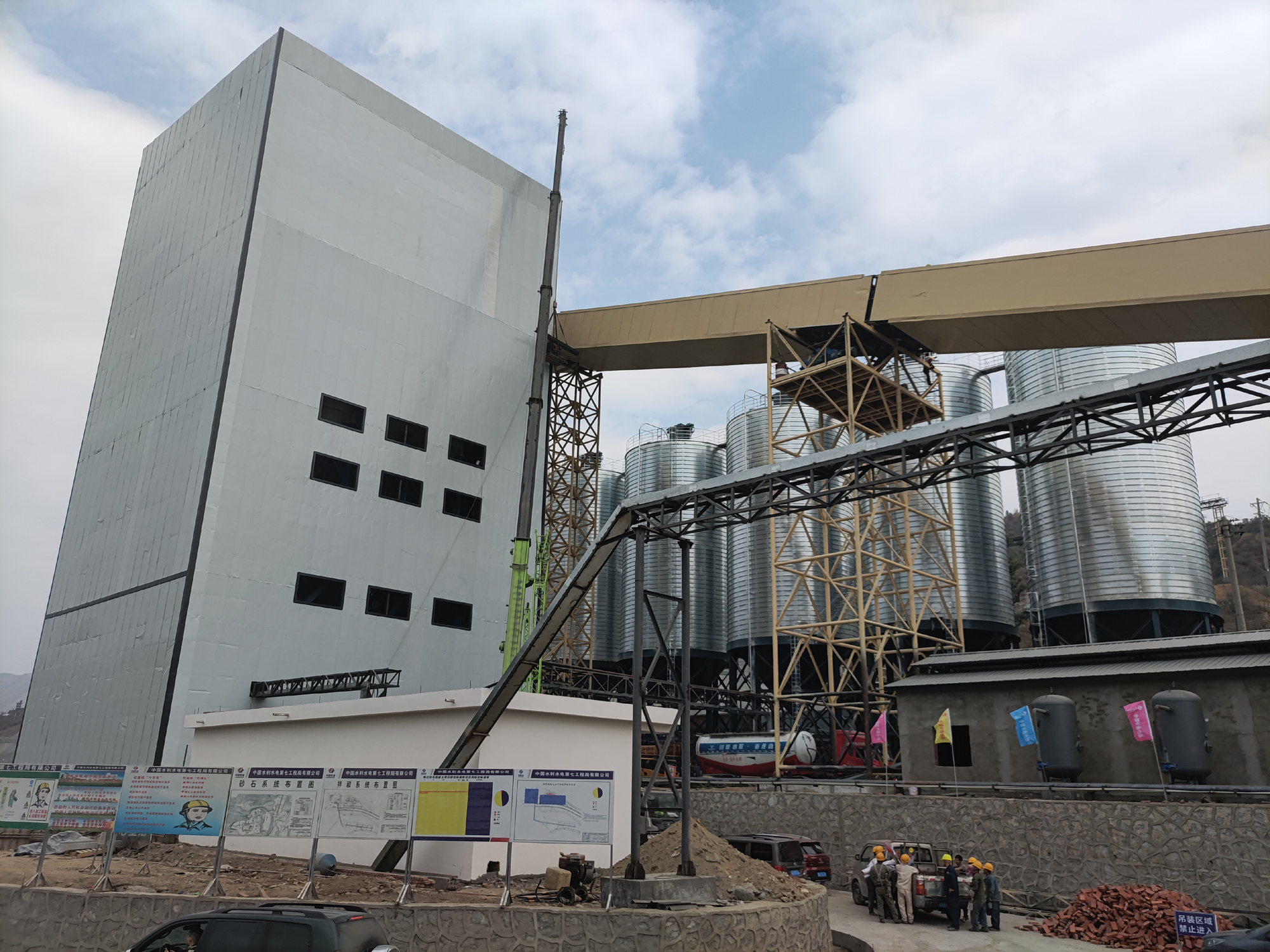 銀江水電站砂石加工、混凝土生產(chǎn)及施工供水系統(tǒng)由水電七局負(fù)責(zé)施工,于2020年10月10日開工,從開始準(zhǔn)備到完成系統(tǒng)建設(shè)時間僅141天,較具有類似產(chǎn)能的砂石加工及混凝土生產(chǎn)系統(tǒng)普遍需要6至8個月的建安工期相比,工期極為緊張。為確保三大系統(tǒng)按期投產(chǎn),公司及各參建單位團結(jié)一心、攻堅克難,共同為三大系統(tǒng)的建設(shè)安裝和運行投產(chǎn)做出了不懈努力。一是強化施工組織,不斷增加資源投入,加班加點搶進度,今年春節(jié)期間全體員工堅守工地,實現(xiàn)了春節(jié)期間未停工的大干熱潮。二是強化過程管控,攀水電公司安排工程管理部2 名同志具體負(fù)責(zé),每日到現(xiàn)場檢查落實施工任務(wù)并組織監(jiān)理和施工單位召開日碰頭會,協(xié)調(diào)解決存在的問題。三是強化溝通協(xié)調(diào),為確保砂石骨料原材料滿足調(diào)試和試運行需要,由公司分管領(lǐng)導(dǎo)帶隊,每日到攀鋼拓為公司協(xié)調(diào),積極克服地方群眾阻工等不利影響,為系統(tǒng)投運做好了物資保障。