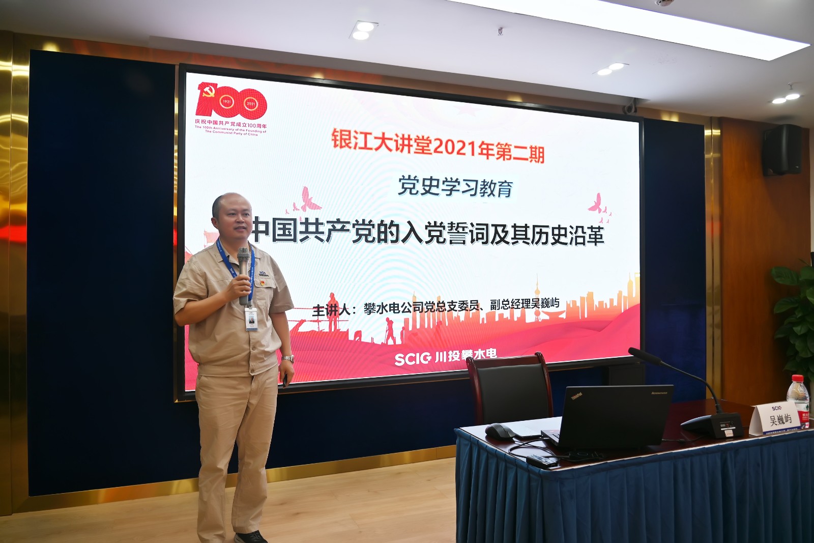 自川投能源攀水電公司“銀江大講堂”開講以來,一直受到了公司員工和各參建單位的廣大歡迎。為持續(xù)開展好“銀江大講堂”活動(dòng),近日結(jié)合黨史學(xué)習(xí)教育主題,開辦了黨史學(xué)習(xí)教育專場。黨員干部學(xué)習(xí)積極性高漲,公司全體員工及各參建單位黨員代表共40余人參加。