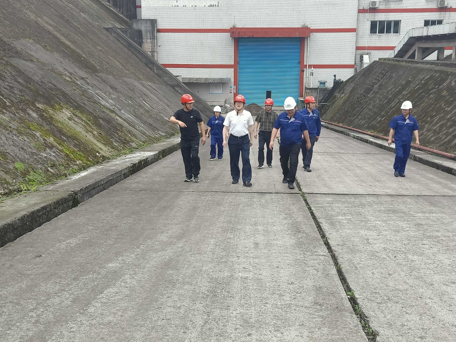 5月21日中午, 川投能源黨委委員、副總經(jīng)理?xiàng)钇皆诖ㄍ峨娏Ω笨偨?jīng)理王偉、陳云明陪同下,到百花灘電站檢查指導(dǎo)防汛工作。