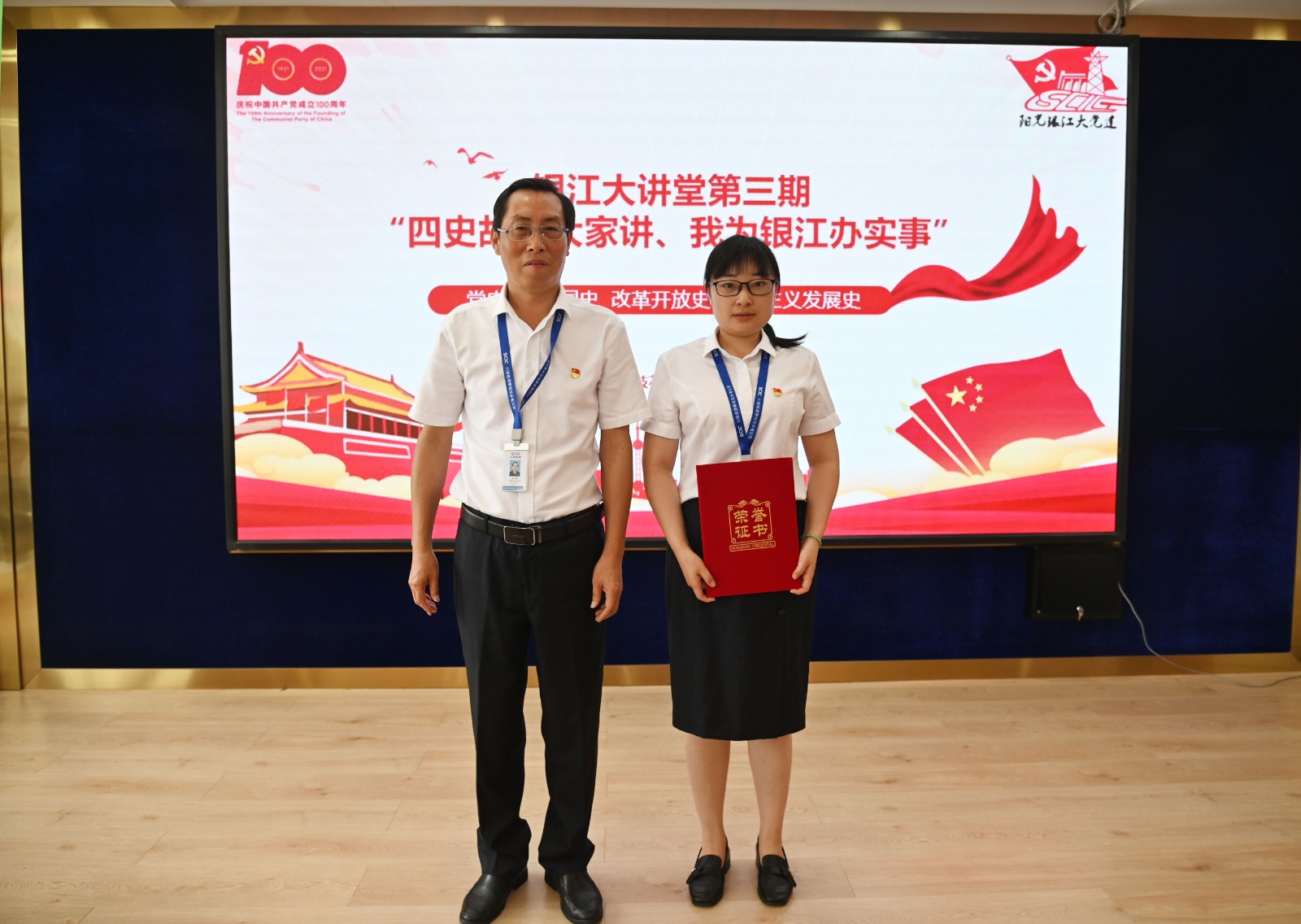 公司黨總支委員、董事會秘書、工會主席鄧勇在開場詞中講到,開展“四史故事大家講、我為銀江辦實事”微黨課演講活動,是公司“陽光銀江大黨建”、《建黨百年獻禮方案》及支部聯(lián)建示范基地創(chuàng)建的工作安排,讓廣大黨員干部走上講臺,以小故事傳遞大能量,小切口展現(xiàn)大主題;結合黨史學習教育和“四史”學習要求,落實徐孝剛書記“為工程一線服務,為銀江工程辦實事”的指示要求;結合工作實際,分享心得感悟,倡導人人為推進工程建設和公司發(fā)展辦實事。