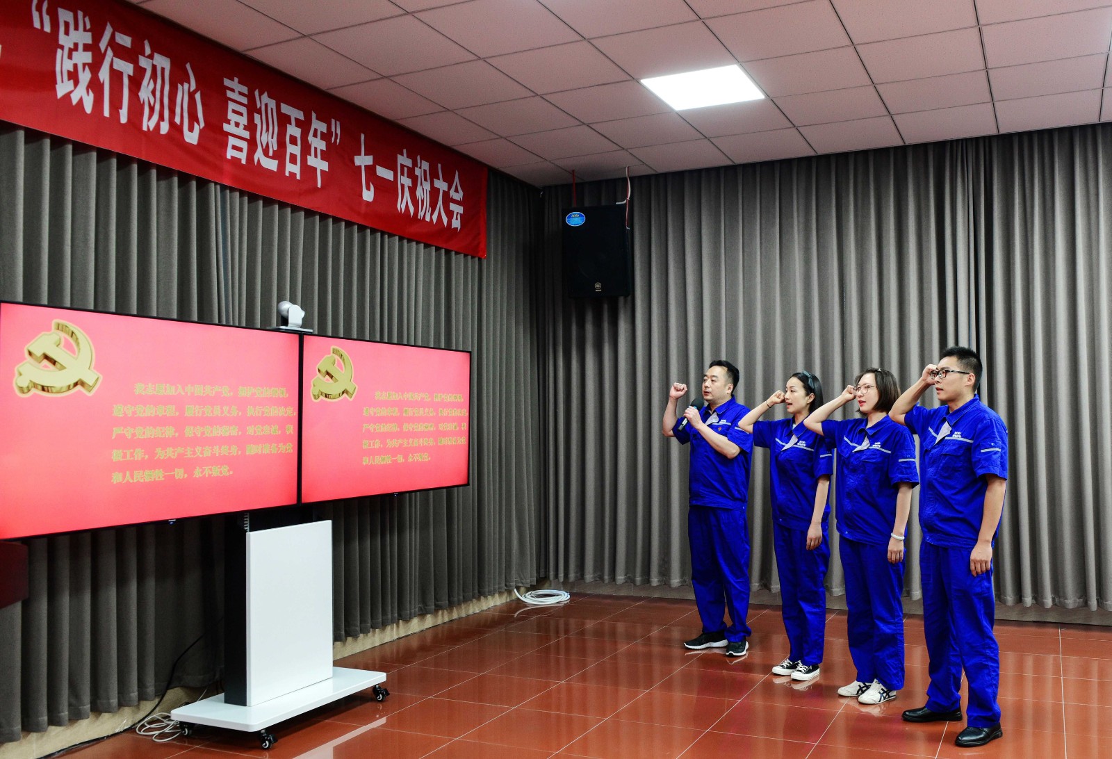 慶祝大會(huì)在雄壯的國(guó)歌聲中正式開(kāi)始。大會(huì)首先由公司黨委書(shū)記、董事長(zhǎng)楊濤帶領(lǐng)三名新黨員在鮮紅的黨旗下進(jìn)行莊嚴(yán)的入黨宣誓,參會(huì)的全體黨員也和新黨員一起重溫了入黨誓詞。時(shí)刻提醒我們要始終保持共產(chǎn)黨員不忘初心、牢記使命的優(yōu)秀品質(zhì)。