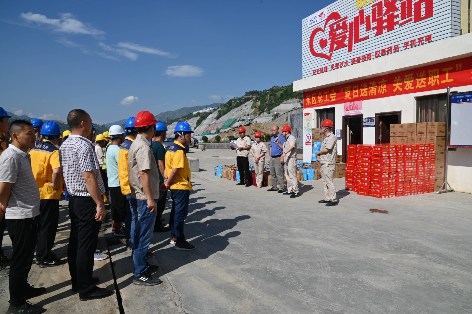 7月以來,攀枝花氣溫持續(xù)升高,為了保證一線職工在高溫環(huán)境下安全、清涼工作,近日攀枝花市東區(qū)總工會(huì)黨組書記、常務(wù)副主席劉貴平一行來到川投能源銀江水電站施工現(xiàn)場(chǎng)愛心驛站,為一線建設(shè)者們送來了300余份清涼解暑飲品和防暑降溫用品,慰問奮戰(zhàn)在高溫一線的作業(yè)人員和管理人員。