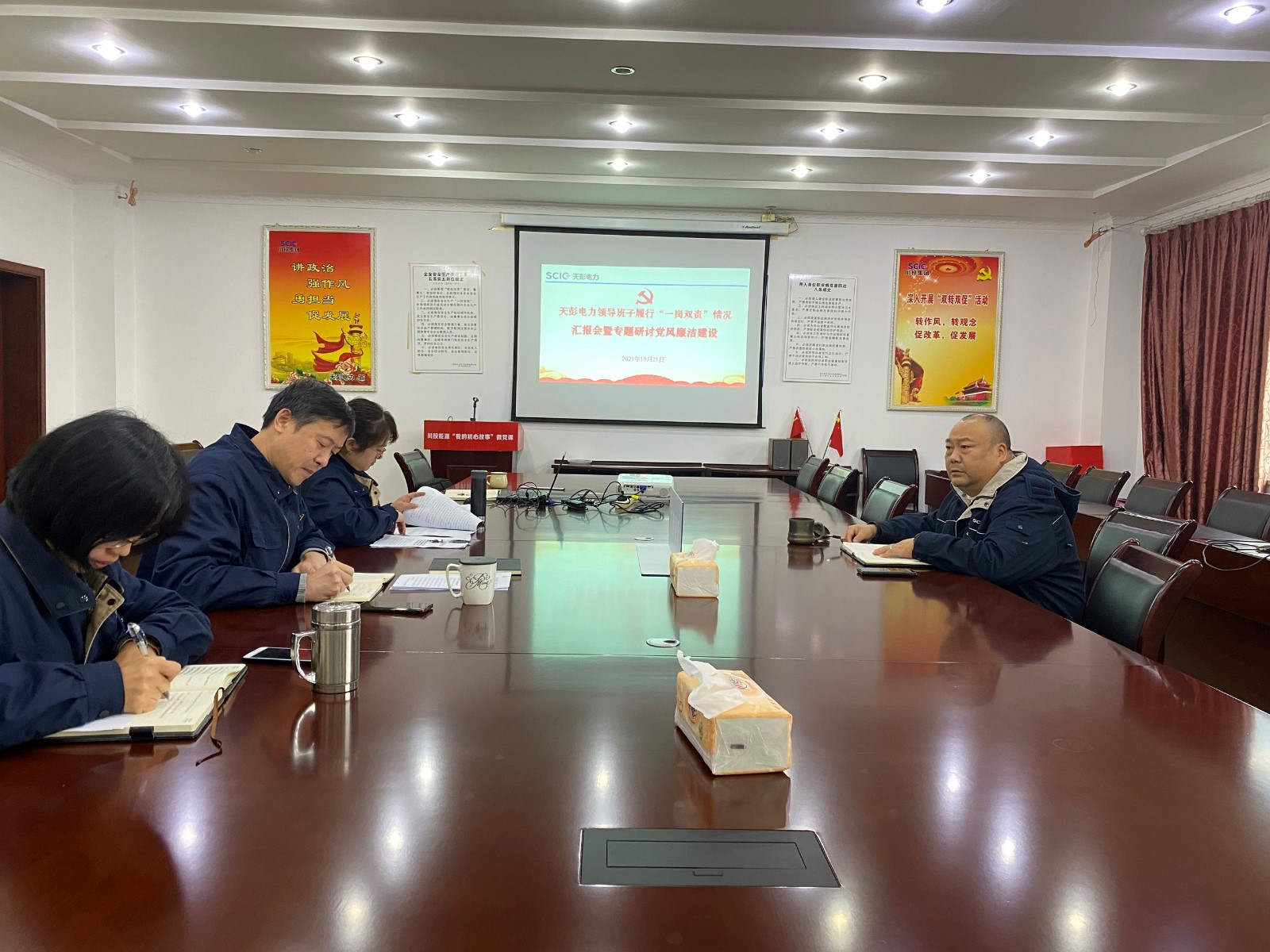 為貫徹落實全面從嚴治黨總體要求,根據(jù)上級黨委工作安排,10月21日,天彭電力召開領(lǐng)導班子履行“一崗雙責”情況匯報會暨專題研討黨風廉政建設(shè)和反腐敗工作會議,著力推動全面從嚴治黨向縱深推進。