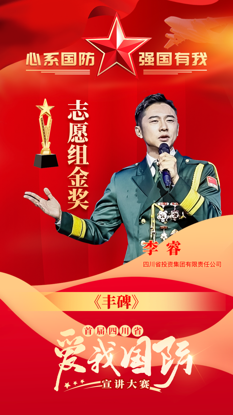 講好新時(shí)代國(guó)防故事、傳播新時(shí)代國(guó)防聲音。7月8日,首屆四川省“愛(ài)我國(guó)防”宣講大賽成果展演在四川廣播電視臺(tái)精彩上演,來(lái)自全省21個(gè)市州和省直有關(guān)部門(mén)的170名選手代表參與展演,展示大賽成果?,F(xiàn)場(chǎng)揭曉了本屆大賽的金獎(jiǎng)和銀獎(jiǎng)獲得者,其中,川投能源選手李睿榮獲金獎(jiǎng)!